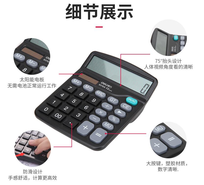得力837計算器辦公用會計專用太陽能學生用帶語音大學財務(wù)小號便攜雙電源計算機器按鍵文具辦公用品大號