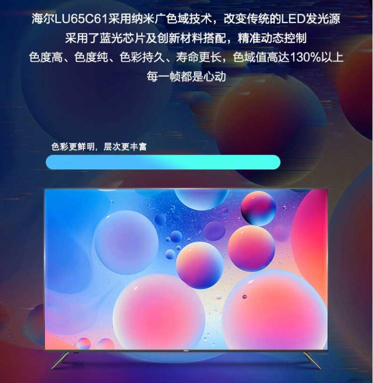 Haier/海爾 LU65C61 65英寸全面屏4K超高清智能網(wǎng)絡(luò)液晶電視機