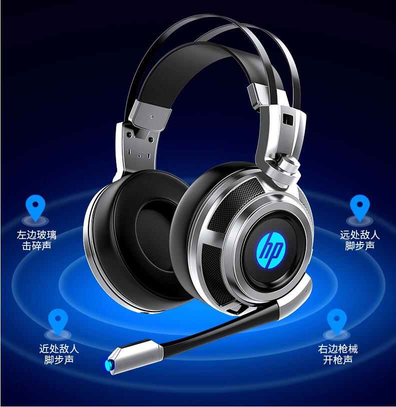 HP/惠普H200電腦耳機頭戴式電競游戲專用7.1聲道吃雞聽聲辯位有線耳麥臺式筆記本帶麥克風話筒